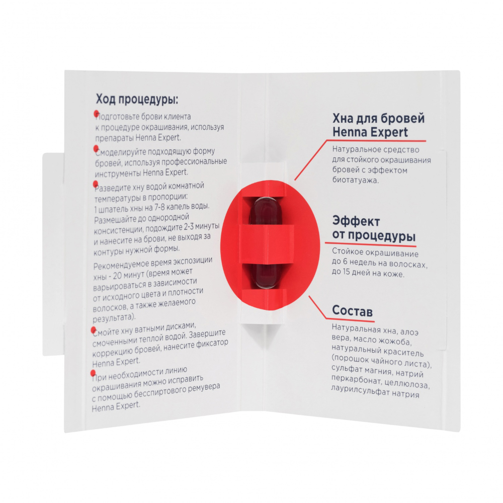 Хна HENNA EXPERT дарит длительный эффект биотатуажа, оказывает ухаживающее SPA-действие: питает волоски бровей, восстанавливает повреждения. Капсула объемом 0,3 гр. рассчитана на 1 применение.